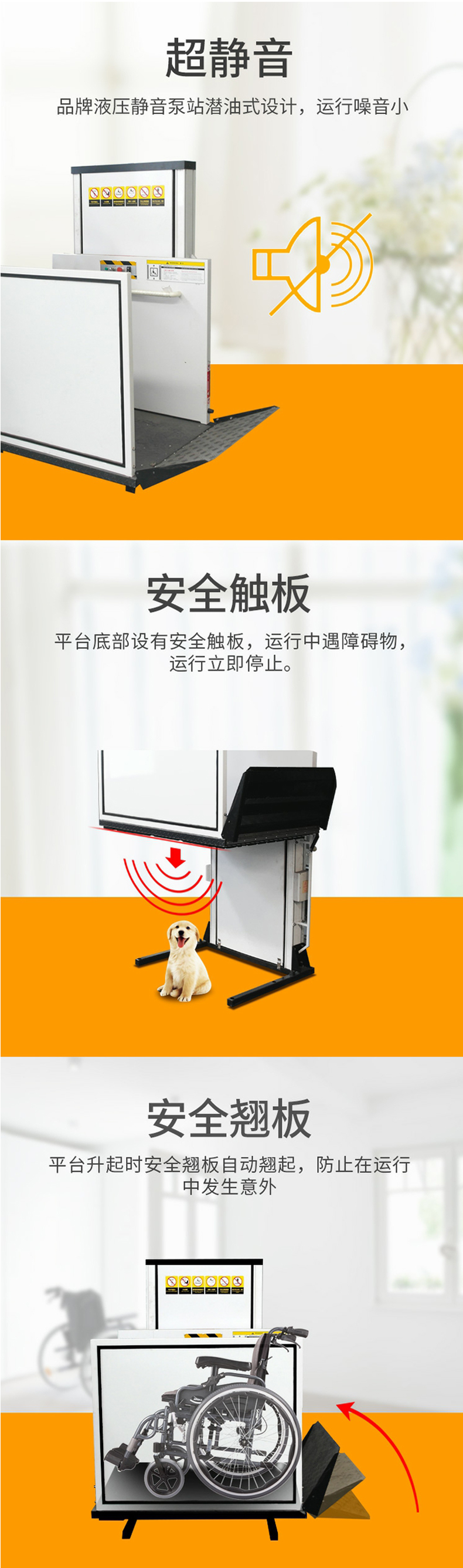 無障礙升降平臺一般升降高度在3米以內(nèi),轎廂尺寸根據(jù)家中空間進(jìn)行設(shè)計(jì)制作。我司可派技術(shù)人員免費(fèi)到家中勘察測量,并給出詳細(xì)的技術(shù)方案后,再進(jìn)行生產(chǎn)與安裝,滿足客戶的使用要求。