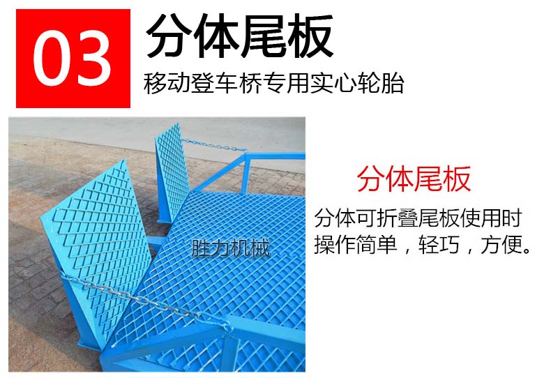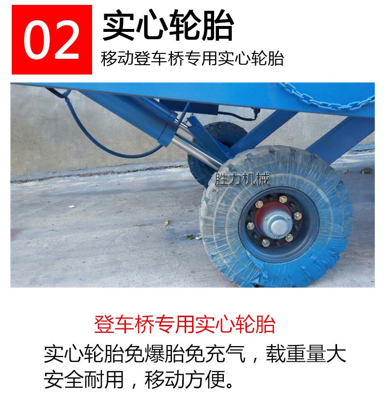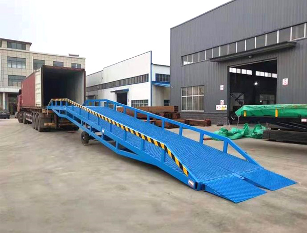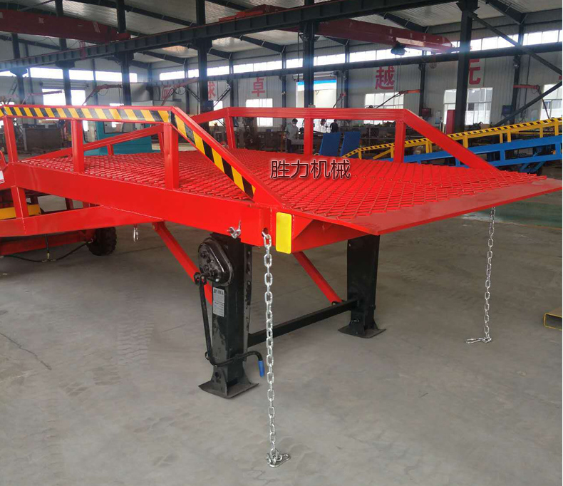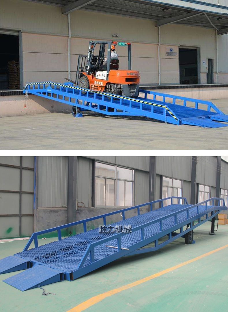 移動登車橋也被稱作叉車裝卸專用平臺,是裝卸貨物的專用液壓設(shè)備,設(shè)備帶有移動輪,可隨時移動到裝卸地點(diǎn)。移動登車橋根據(jù)額定載重量可分為6噸、8噸、10噸、12噸、15噸,設(shè)備總長11米,帶有坡度,叉車等搬運(yùn)車輛可通過移動登車橋的坡度和高度直接駛?cè)胴涇噧?nèi)部進(jìn)行裝卸貨物作業(yè),在提高裝卸作業(yè)效率的同時又能充分保障作業(yè)安全。移動登車橋無需外接電源,可通過手壓泵做動力進(jìn)行能設(shè)備高度的調(diào)整,可以充分適應(yīng)各種不同高度的貨車。移動登車橋加快裝卸貨物的速度,減少勞動力,為企業(yè)獲取更大的經(jīng)濟(jì)效益。