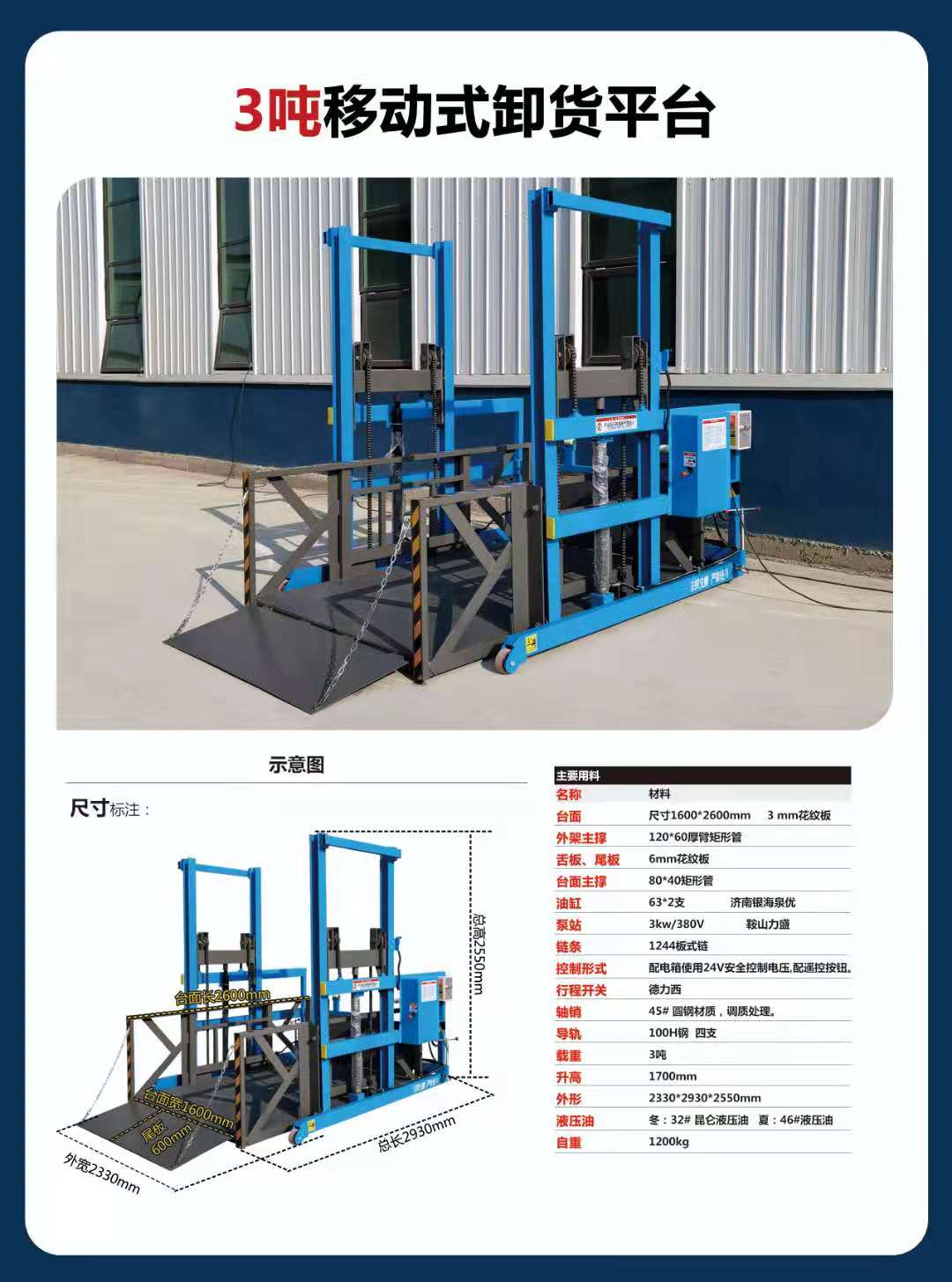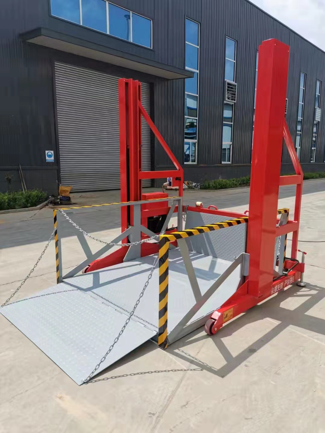 卸貨柜設(shè)備也可以叫做升降式卸貨平臺(tái),屬于可移動(dòng)升降平臺(tái)。卸貨柜設(shè)備擁有移動(dòng)靈活,升降平穩(wěn)的特點(diǎn)。被廣泛應(yīng)用于集裝箱與叉車等搬運(yùn)車輛配套進(jìn)行貨物的快速裝卸等。卸貨柜平臺(tái)的操作簡(jiǎn)單,把平臺(tái)移動(dòng)至需要裝卸貨物的車輛尾部,把叉車等貨物放入工作臺(tái)面上,一人通過無(wú)線遙控或工作臺(tái)面上的按鈕即可輕松把叉車等貨物升高至與車尾同等高度,使叉車與貨物輕松快速的駛?cè)胲噹麅?nèi)部。