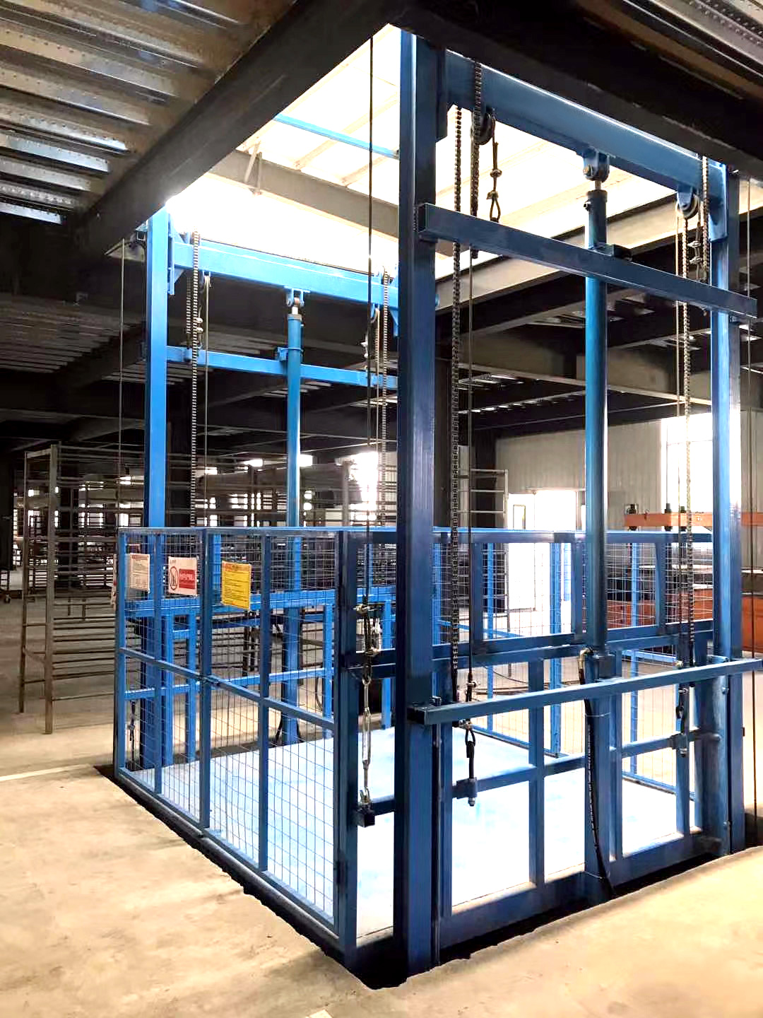 超市升降貨梯是一種非剪叉式液壓升降平臺(tái)設(shè)備,采用液壓油缸作為主要?jiǎng)恿?,通過重型鏈條和鋼絲繩傳動(dòng),保證機(jī)器運(yùn)行的安全。無需地坑和機(jī)房,特別適合于有多層工業(yè)廠房、倉庫、超市等多樓層間的貨物傳輸,超市液壓升降貨梯產(chǎn)品結(jié)構(gòu)堅(jiān)固,承載量在在,升降平穩(wěn),安裝維護(hù)簡單方便,是經(jīng)濟(jì)實(shí)用的低樓層間替代電梯的理想貨物輸送設(shè)備。