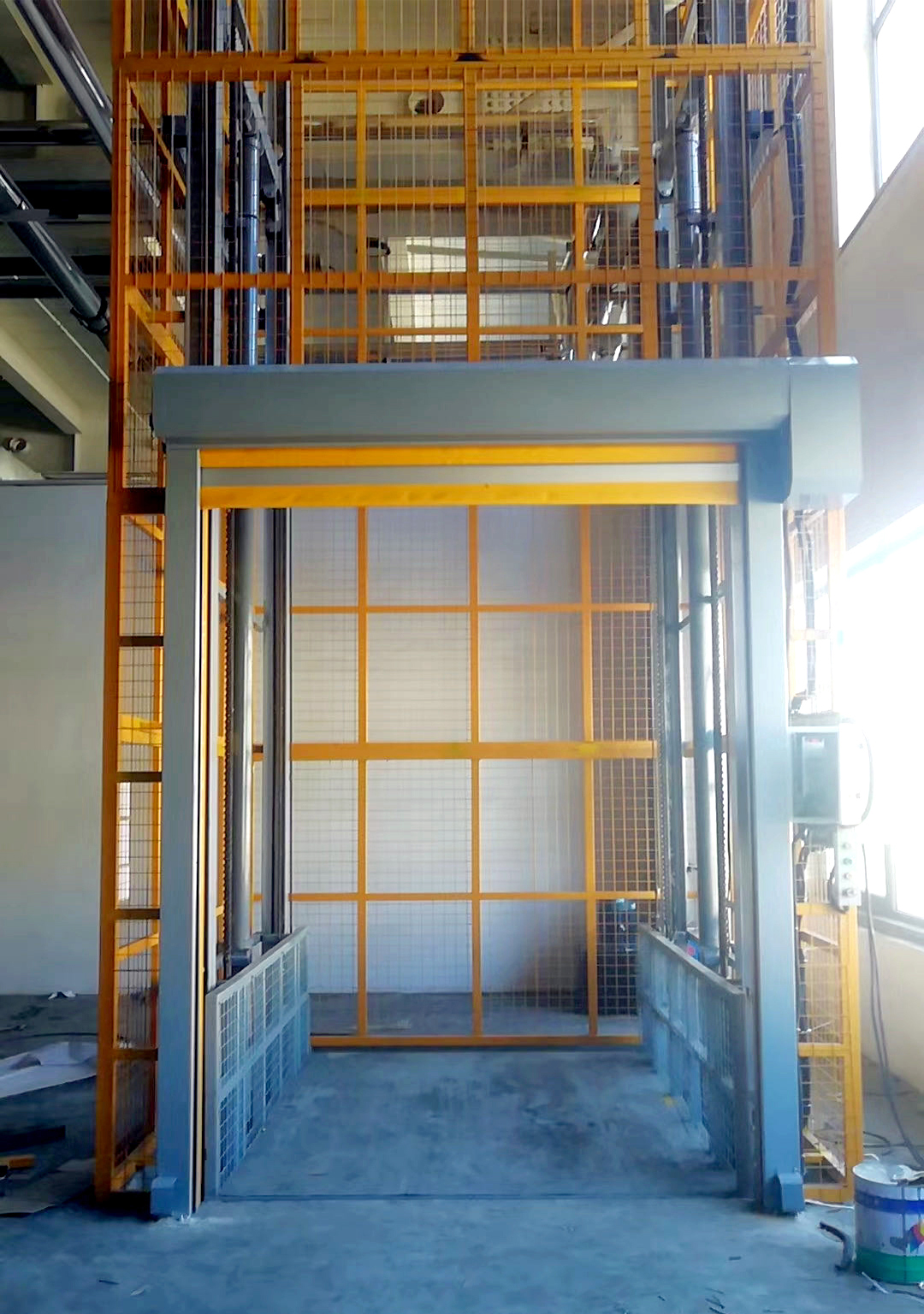 工廠車間簡易運貨升降機一般是指導軌鏈條式液壓升降貨梯,這是一款無需底坑、無需井道、無需機房即可安裝的升降設備,被廣泛用于工廠、車間、倉庫、防爆化工車間、冷庫、超市等多樓層內的物料和貨物的上下運輸。工廠車間簡易運貨升降機的主要構成部分是液壓油缸、重型鏈條、主體導軌、載貨臺面、液壓泵站和電控系統(tǒng)等組合而成。