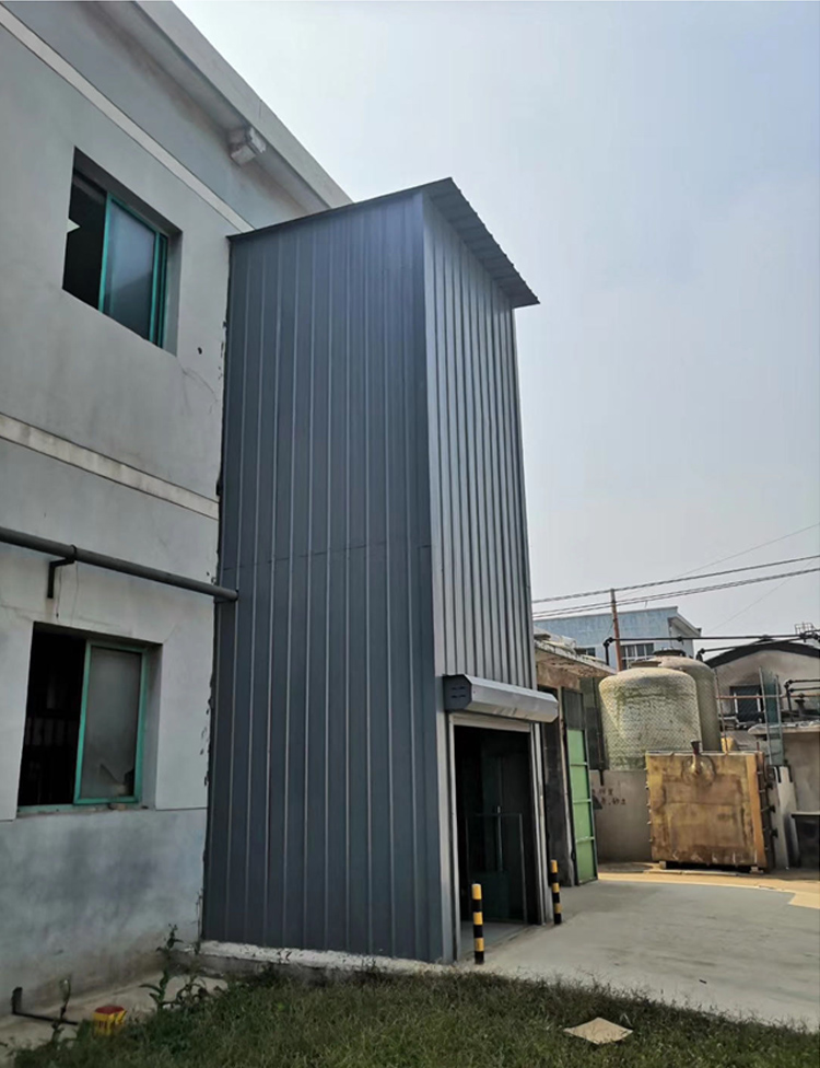 我們在安裝液壓升降貨梯時,一般會配套外圍防護以及外層門,根據不同的使用環(huán)境,外圍防護和外層門的選擇也是多樣式的。如果我們安裝在室內,四周沒有墻體的情況下,我們會在液壓升降貨梯的外圍做鋼網封閉,這樣可以有效的防止人員踏空。如果我們是安裝在樓體戶外,在安裝完液壓升降貨梯后,我們會在平臺外側做彩鋼瓦整體封閉,這樣可以有效的避免液壓升降樓貨長期被雨水侵蝕。